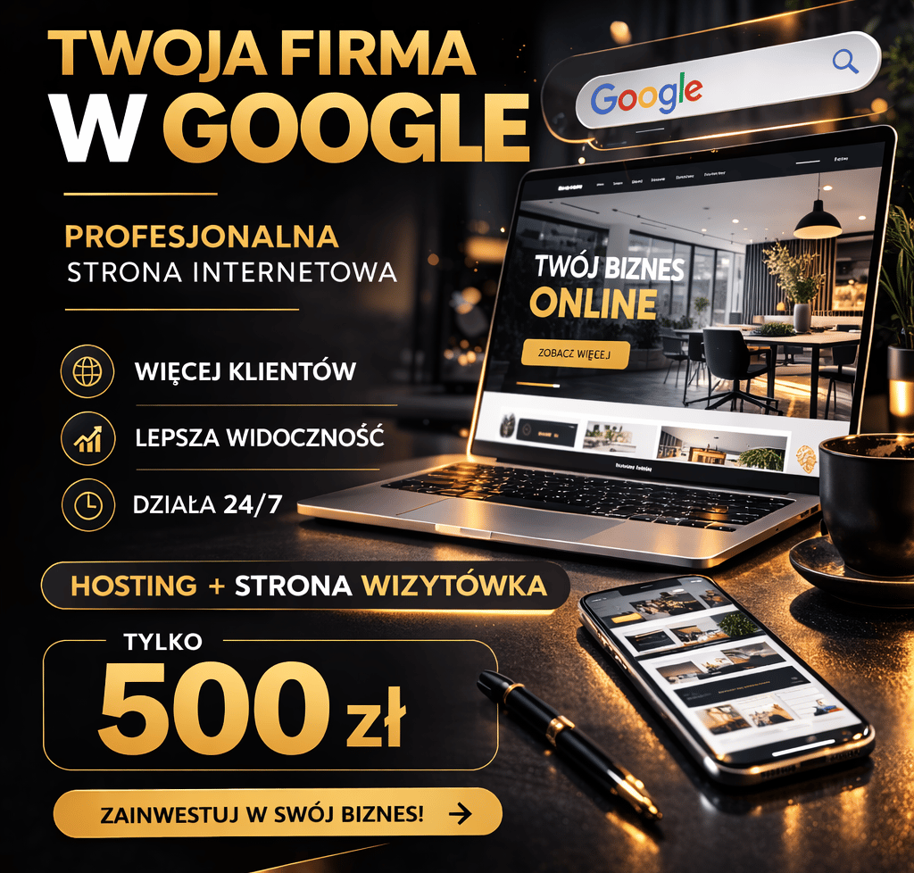 Hosting + strona internetowa wizytówka w cenie 500 zł.